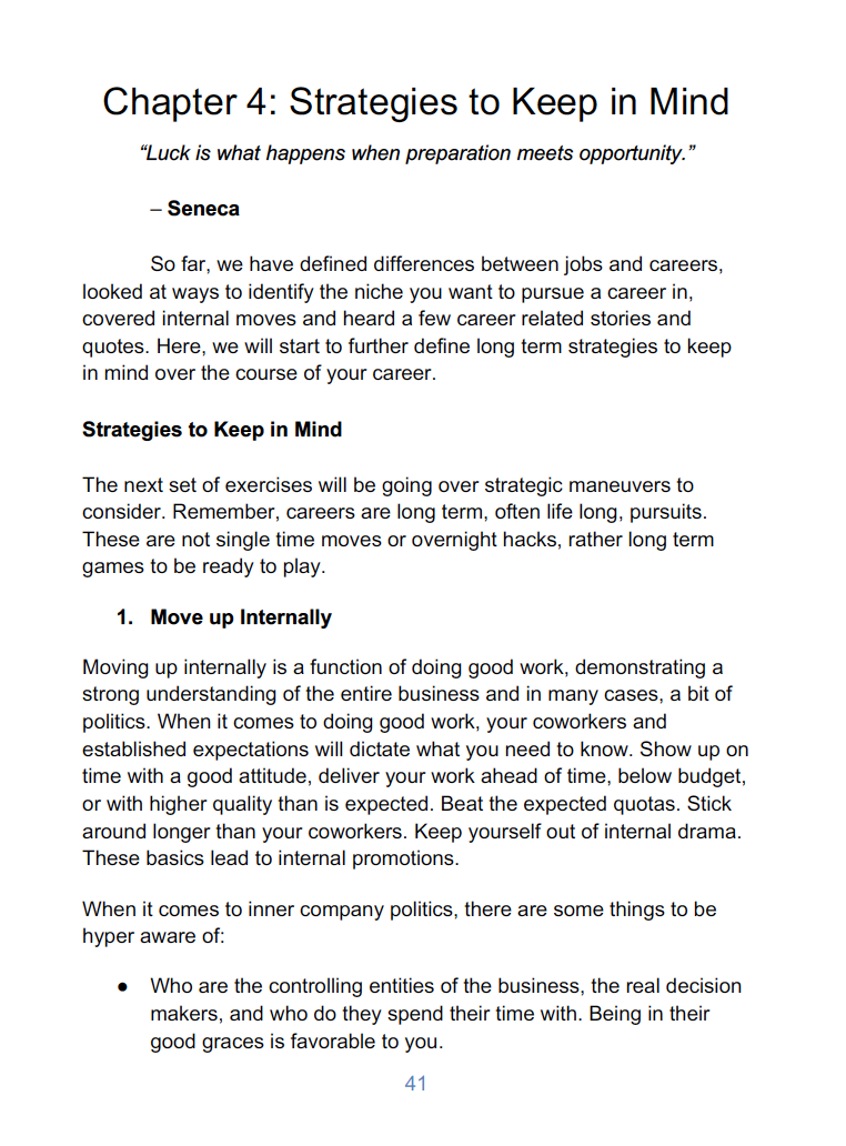 Work can be as natural as play when we are truly pulled into what we do. Discover and Land Your Dream Career is an eBook for those who want to make the most of their professional lives. It's written to give readers multiple ways to think about their career paths, features multiple ways to discover the niche area to build your career in and takes the concept even further by showing how to get attention from companies without relying on public job posts.
